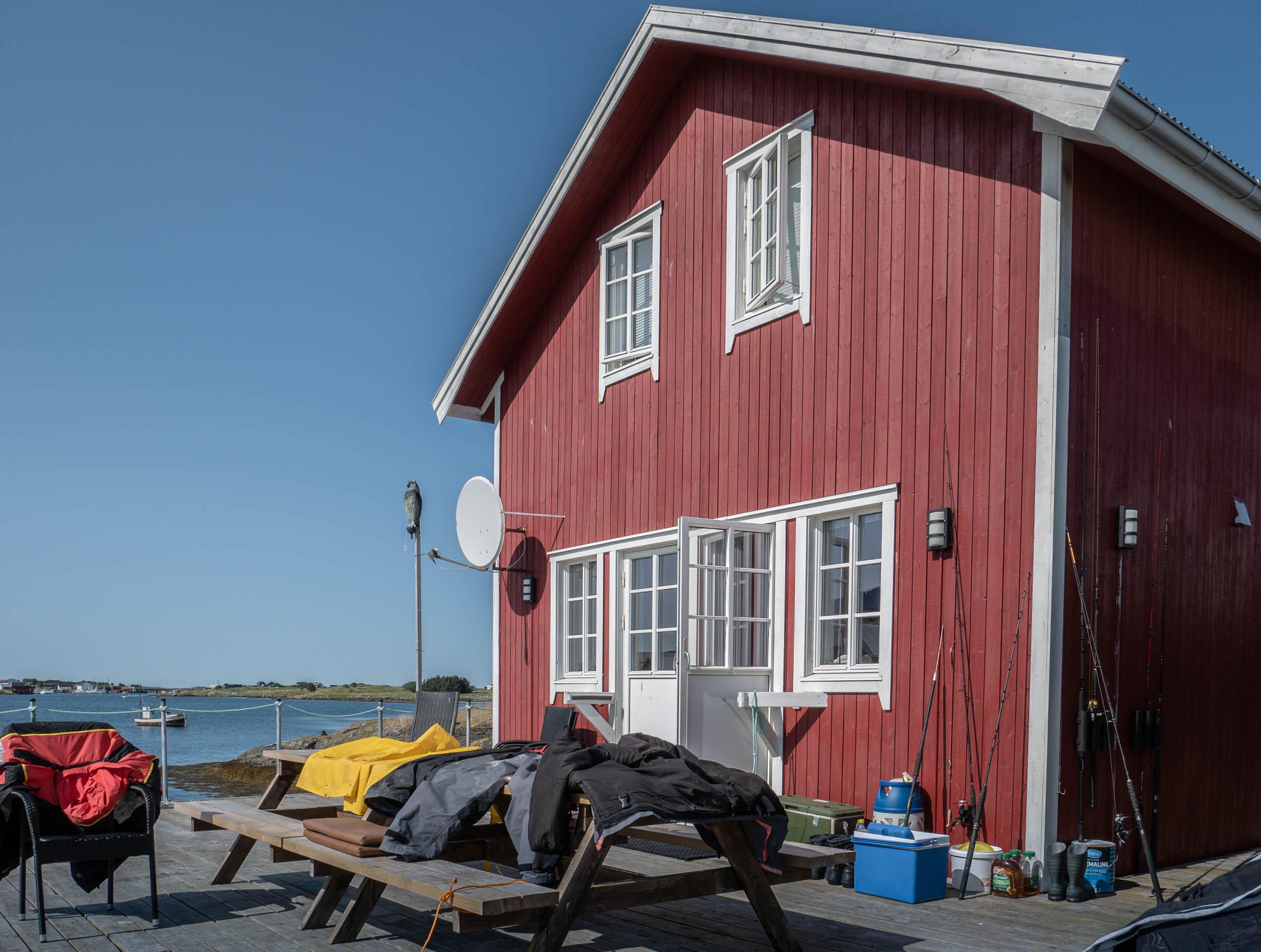Vi havde i flere dage ledt efter friskfanget fisk uden held, og var tæt på at falde for en norsk lakseside i COOP. Thorbjørn kunne tilbyde frosne torsk og sej, hvis vi ville tage med ham hjem.